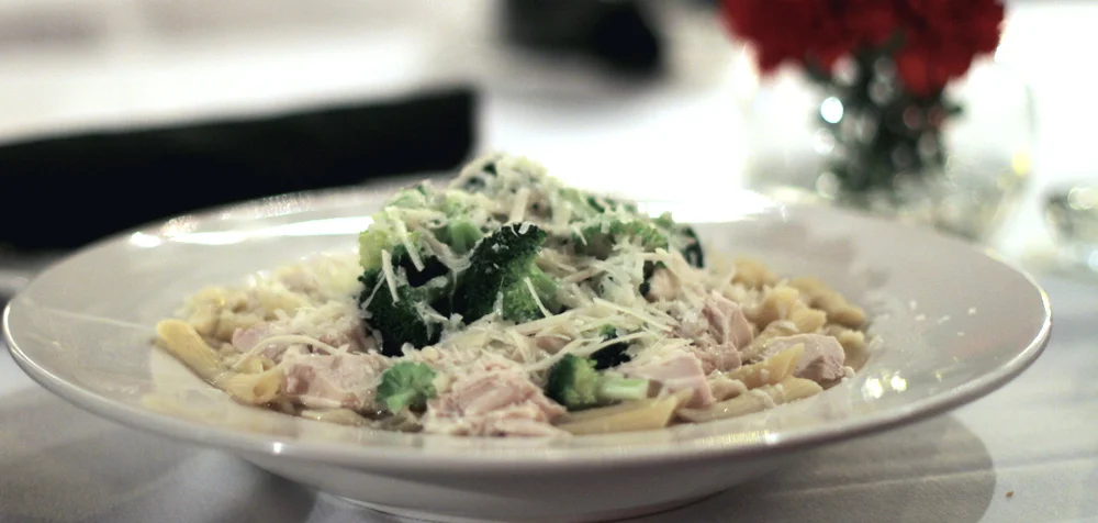 Same as the soup but with much more of everything...a bowl of ziti pasta, topped with fresh steamed broccoli, boned chicken and lots of grated Romano cheese.